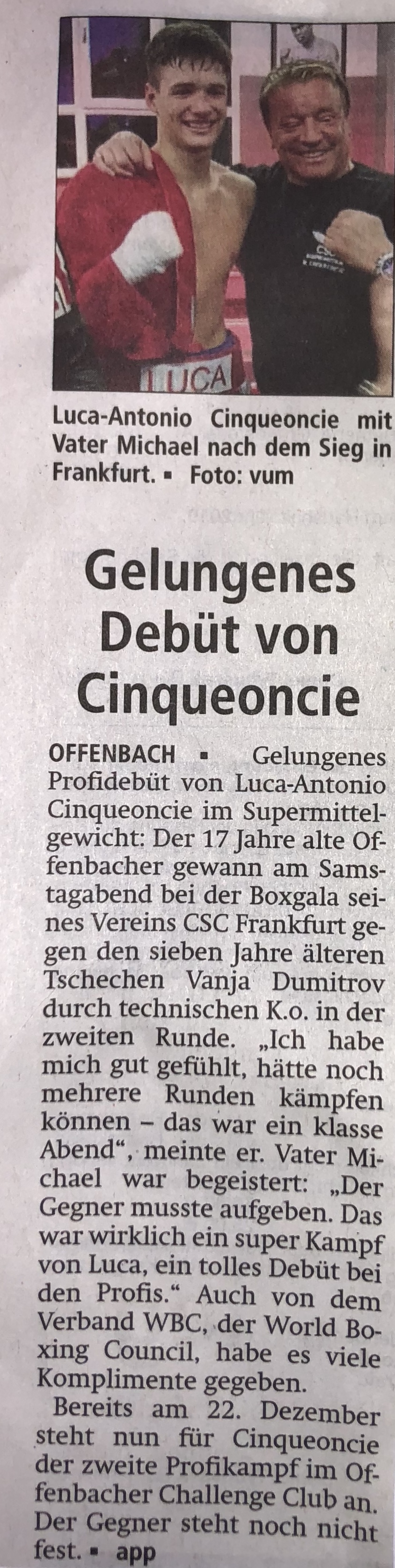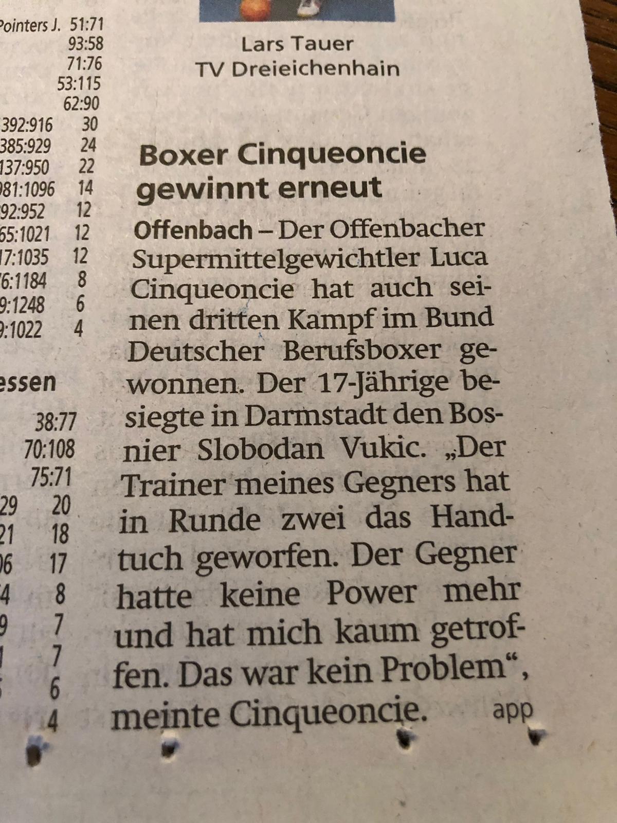 Luca Cinqueoncie Boxing